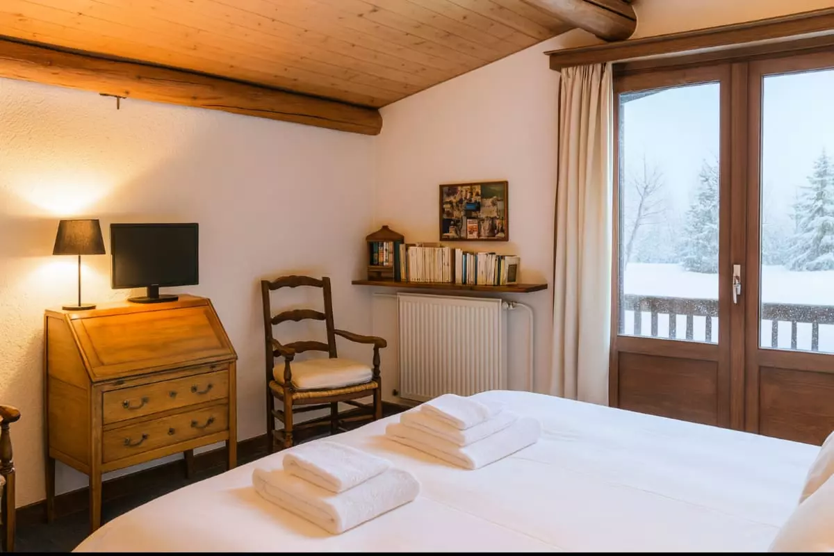 Das Chalet verfügt über 5 Schlafzimmer, in denen Sie 4 Doppelbetten und 1 Einzelbett vorfinden. Ein Babybett ist ebenfalls vorhanden. Es gibt eine „Master-Suite“ mit 1 Badezimmer. Der Rest des Chalets bietet 1 Duschraum, aber jedes Schlafzimmer hat ein Waschbecken. Der Wohn- und Essbereich ist sehr angenehm und öffnet sich zu einem großen, langen Balkon mit Blick auf den MONT BLANC. Das Chalet verfügt über einen großen privaten Garten, der sowohl im Sommer als auch im Winter sehr beliebt sein wird.