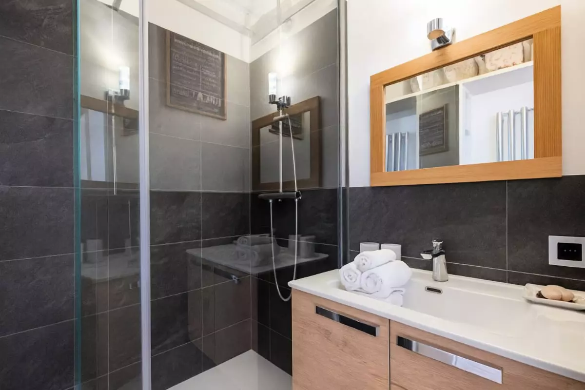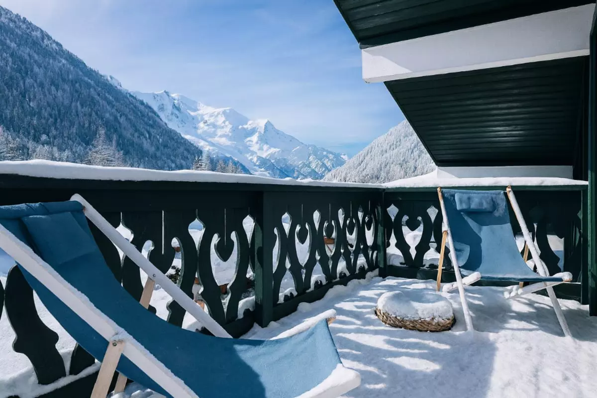 - ein herrlicher Balkon mit herrlichem Blick auf den Mont Blanc, ausgestattet mit Tisch, Stühlen und Liegestühlen, damit Sie die Landschaft bewundern können.