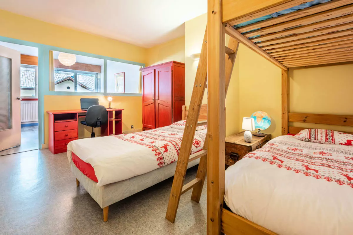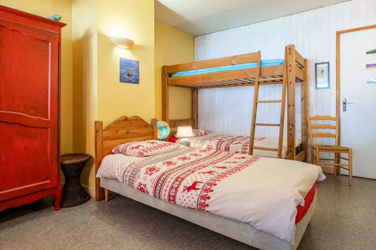 - zwei Schlafzimmer, eines mit einem Doppelbett und das andere mit einem Einzelbett und einem Etagenbett;