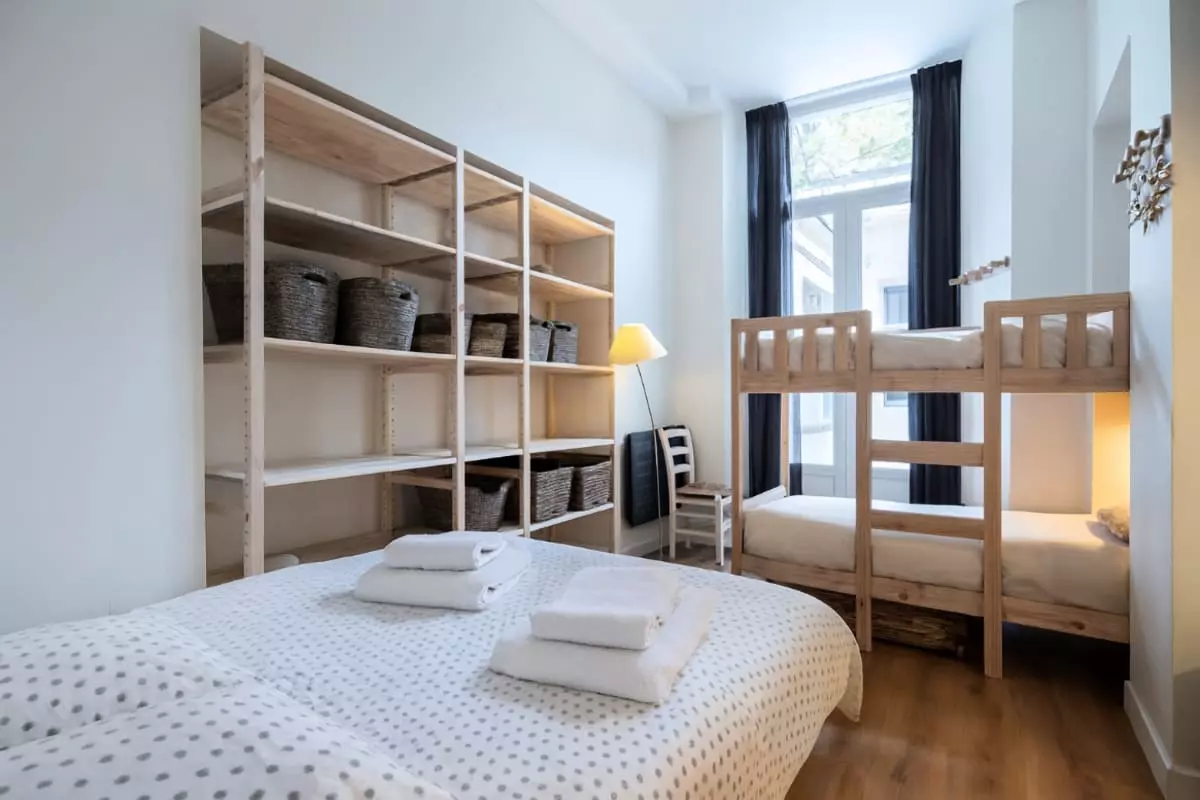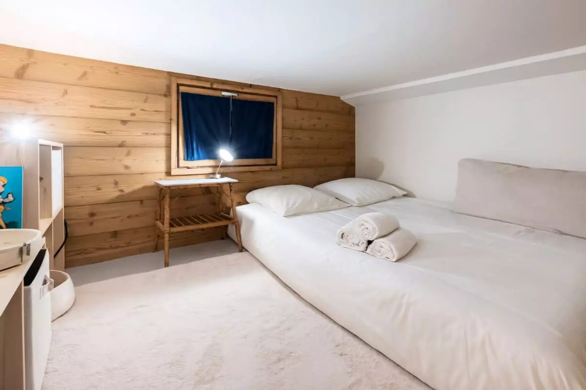 - drei Schlafzimmer mit drei Doppelbetten und einem Etagenbett (bitte beachten Sie, dass eines der drei Schlafzimmer ein Zwischengeschoss ist – geschlossen – in dem man sich wie in einer Zuflucht oder einer Hütte fühlt und das eher für junge Leute geeignet ist);