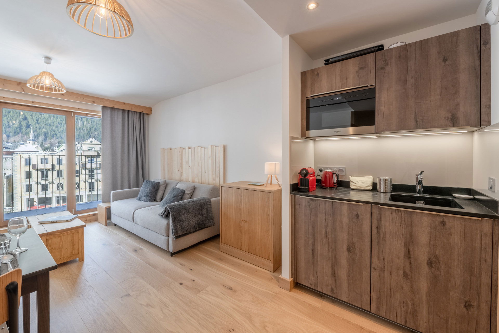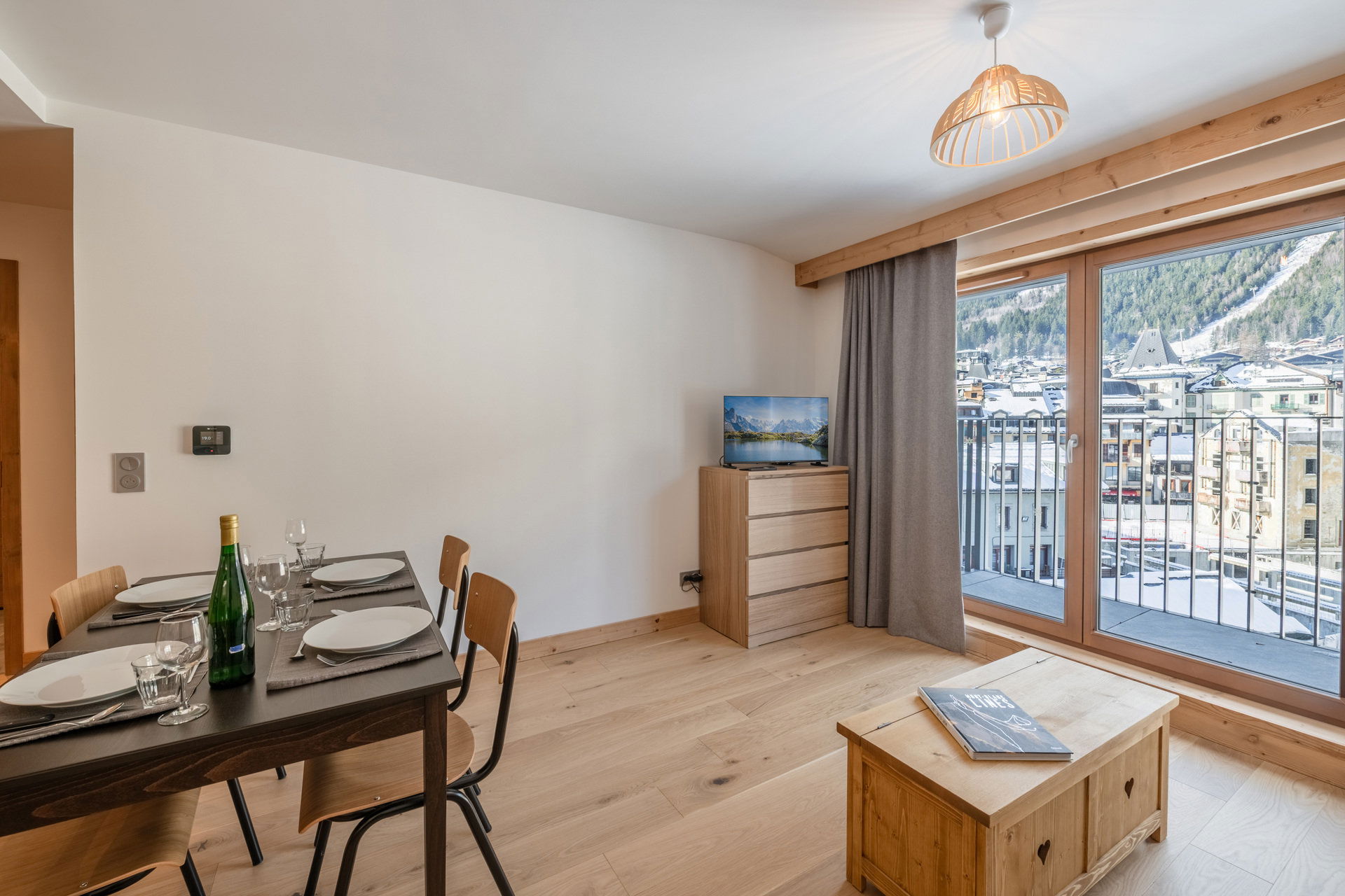 Gemütliches 43 m² großes Apartment für 4 Personen im 4. Stock mit Aufzug der neuen Residenz Blanc Mont-Blanc im Zentrum von Chamonix, in ruhiger Lage.