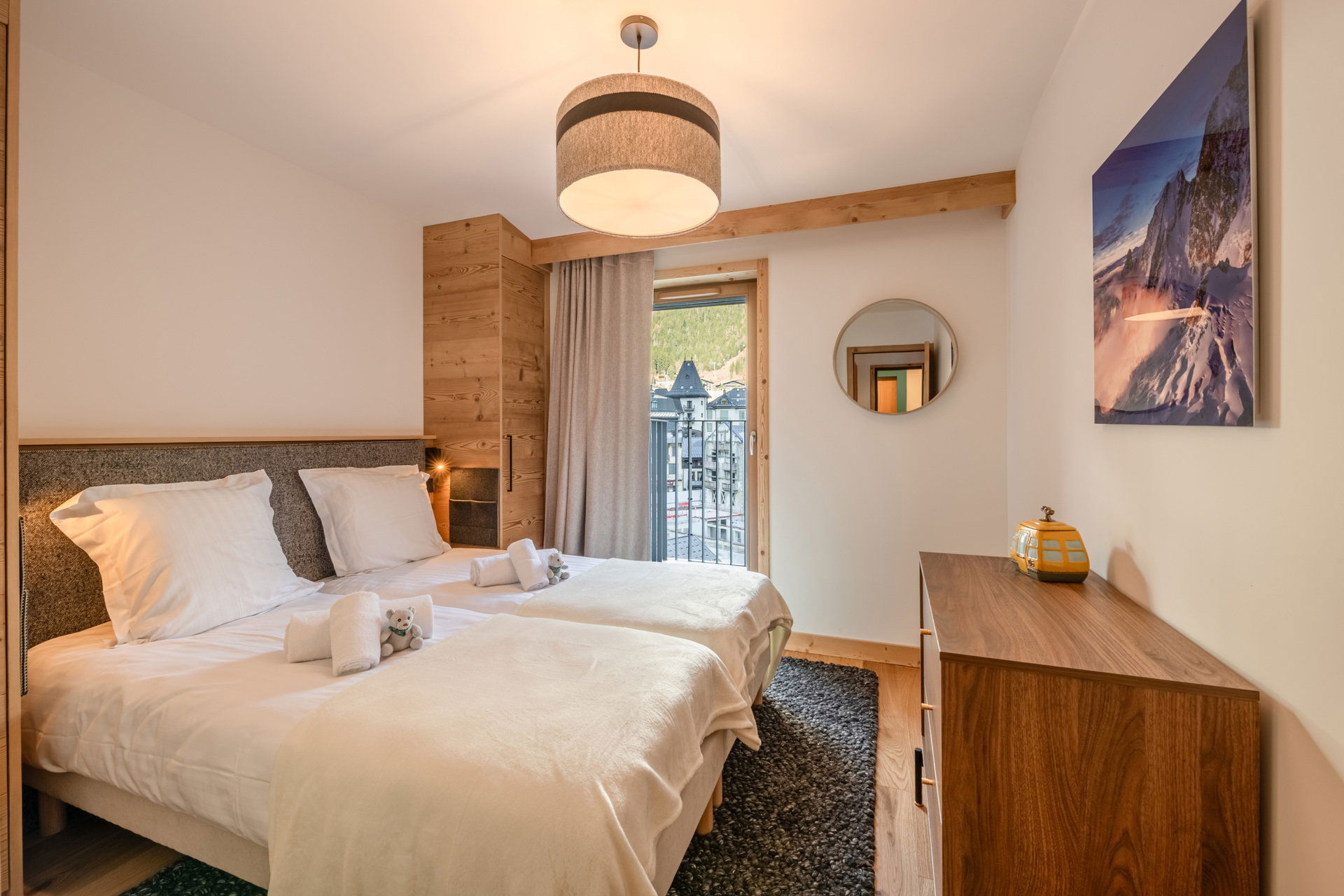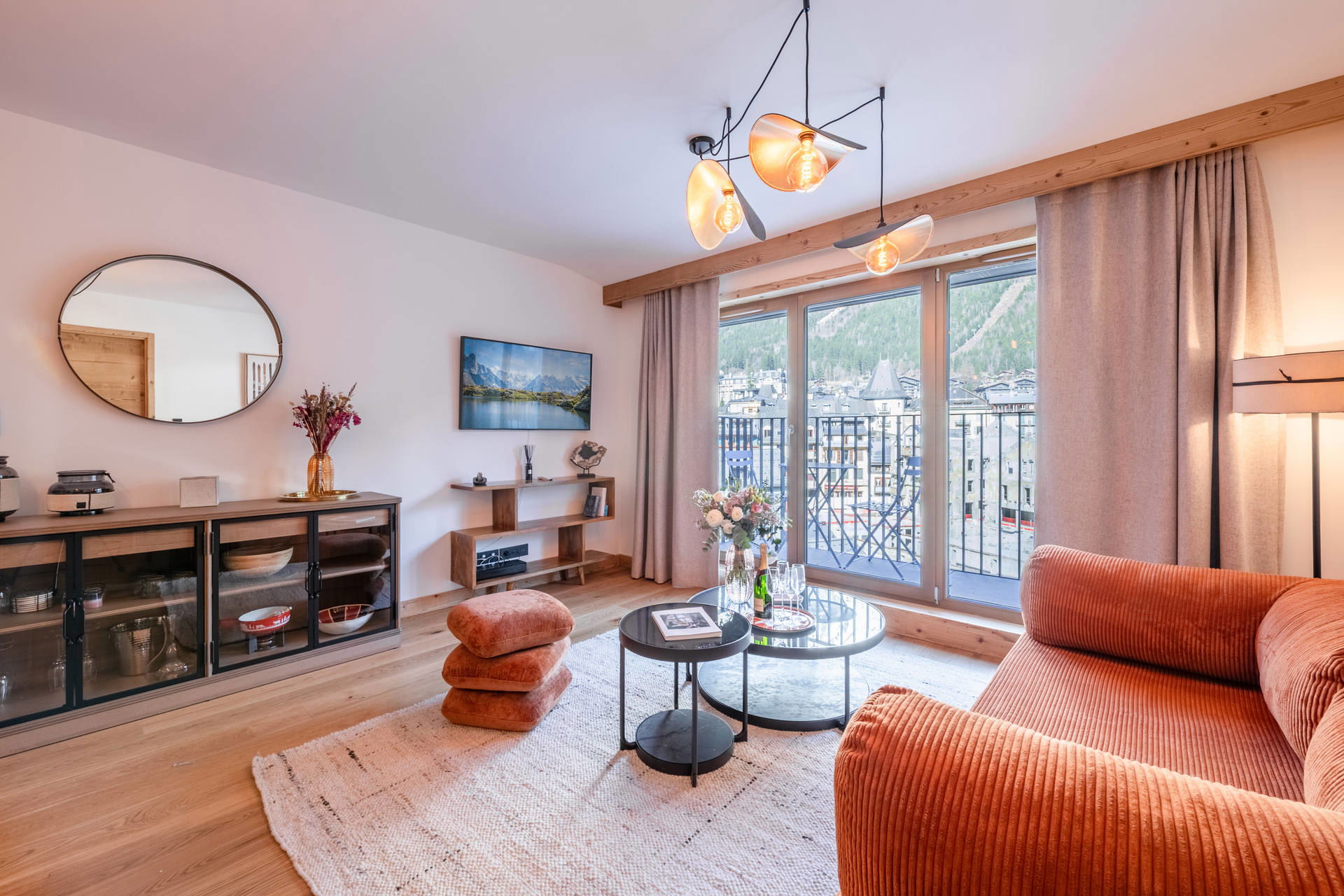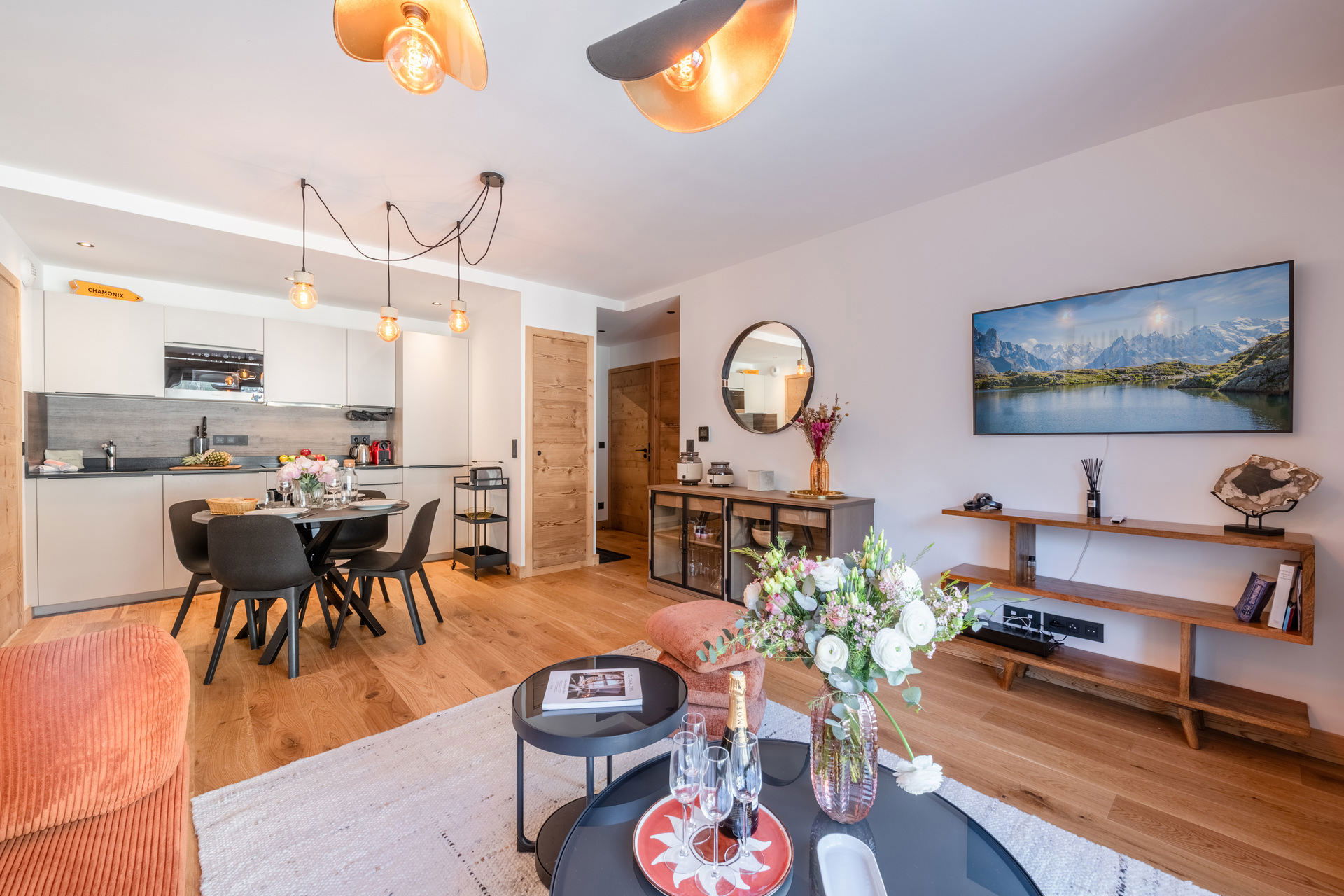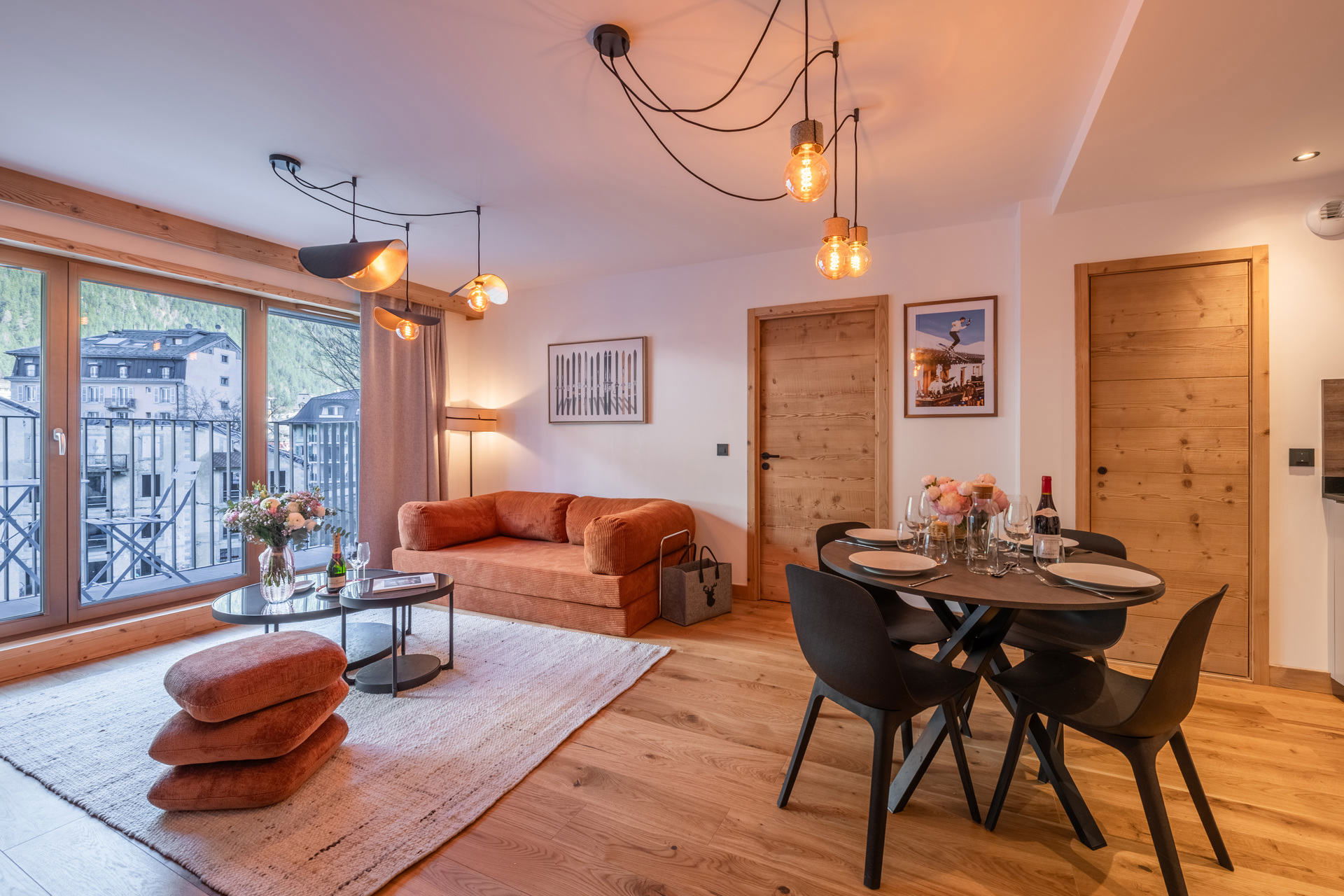 Wunderschön eingerichtetes 60 m² großes Apartment für 4 Personen im 4. Stock mit Aufzug in der brandneuen Residenz Blanc Mont-Blanc im Zentrum von Chamonix, in ruhiger Lage.
