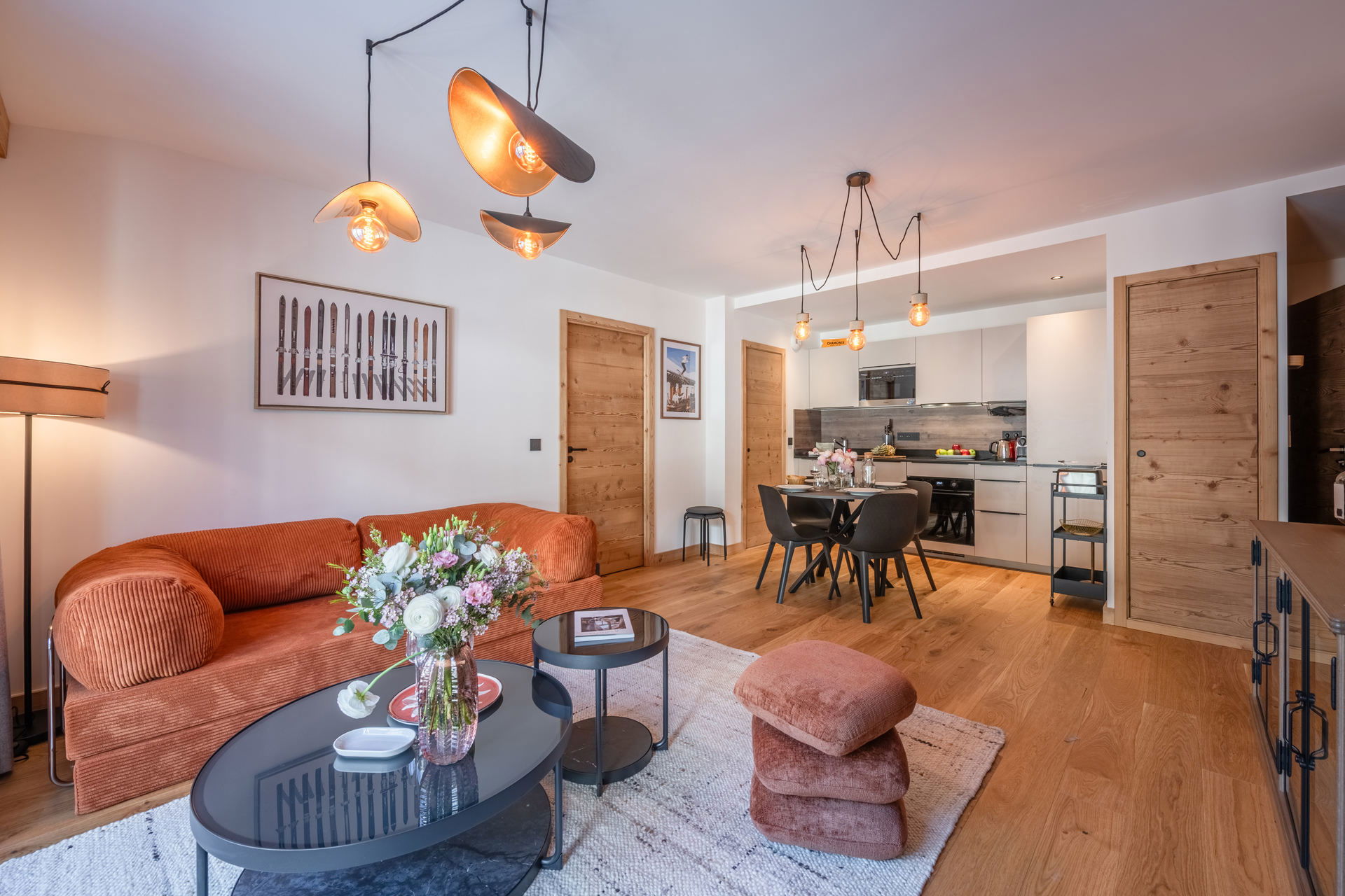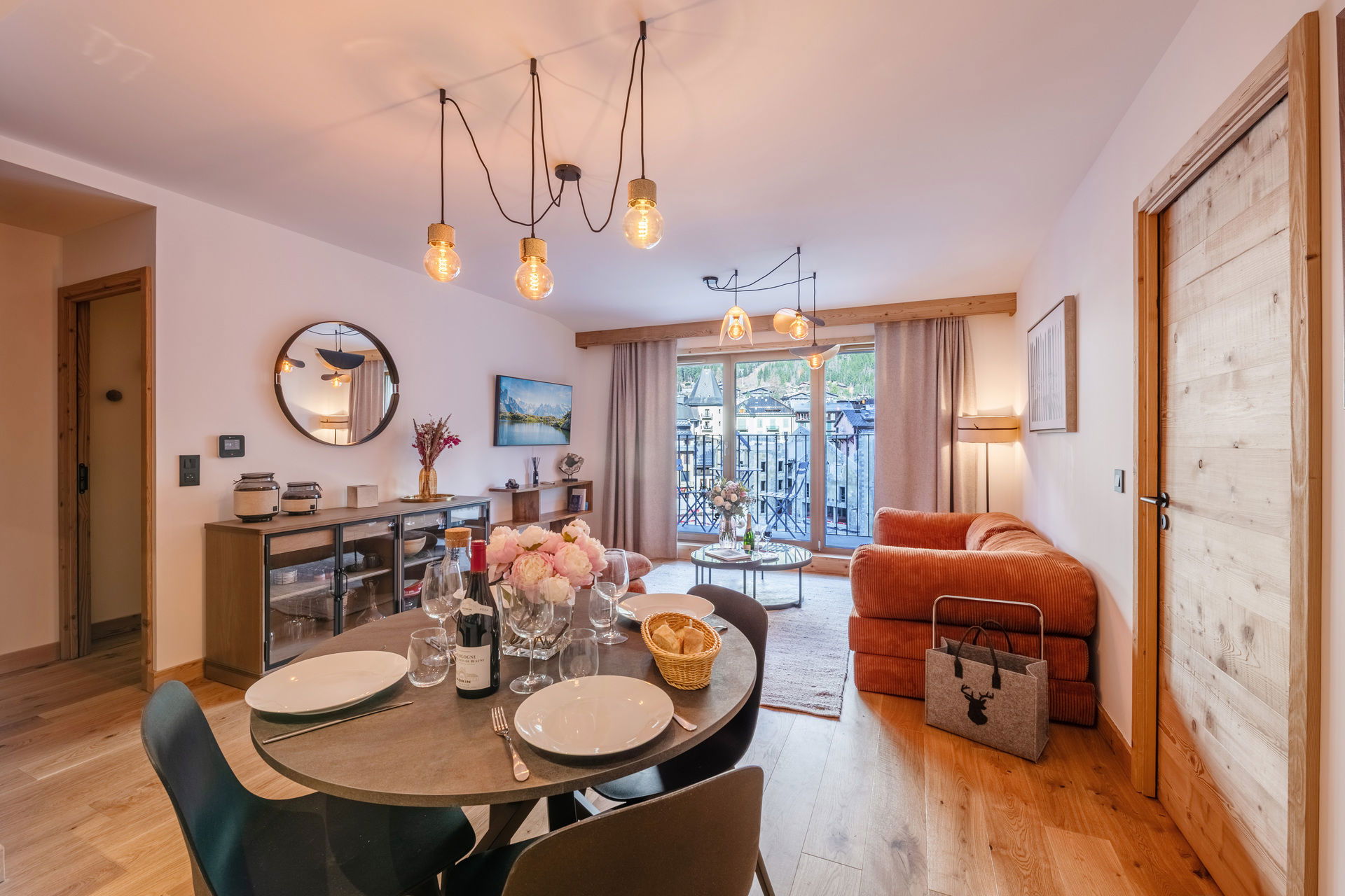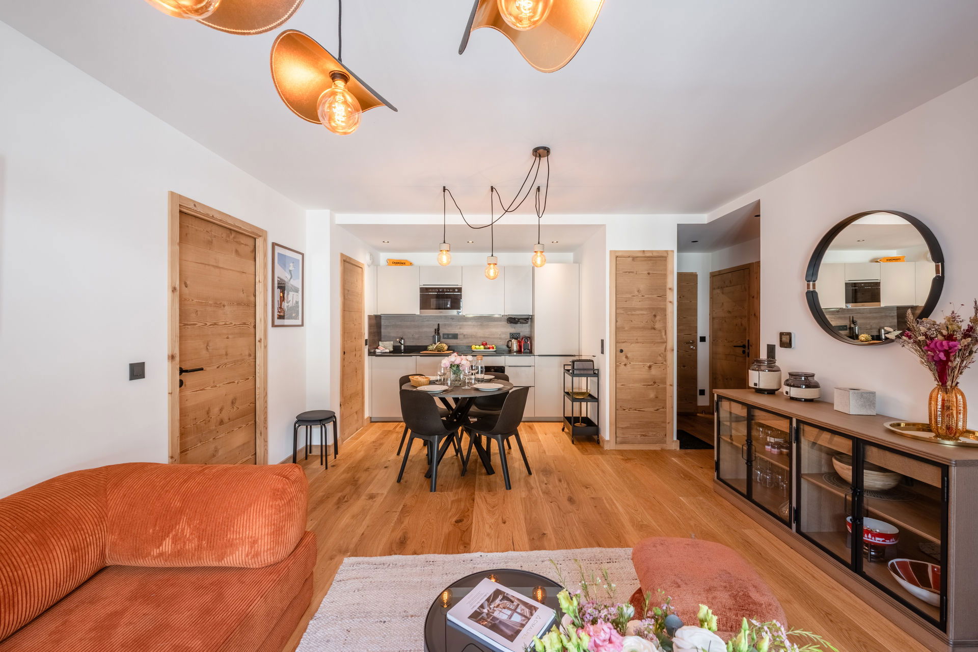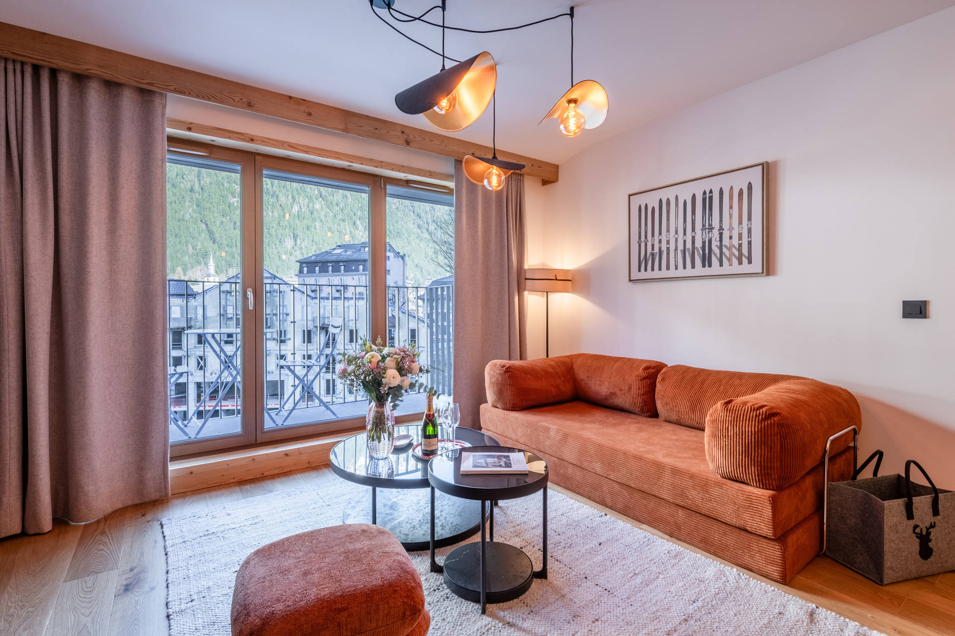 Wunderschön eingerichtetes 60 m² großes Apartment für 4 Personen im 4. Stock mit Aufzug in der brandneuen Residenz Blanc Mont-Blanc im Zentrum von Chamonix, in ruhiger Lage.